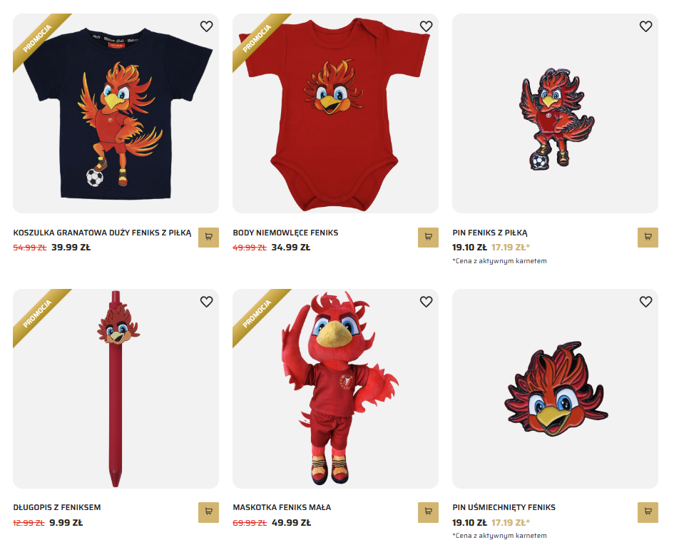 „Feniks” to nie tylko jedna koszulka, ale cały zestaw gadżetów związanych z klubem i jego „odrodzeniem”. Są to m.in. workoplecaki, kubki, poduszki, puzzle, a nawet pidżamy dla dzieci, bluzy, koszulki, piny, długopisy, maskotki czy pajacyki i body dla niemowlaków.